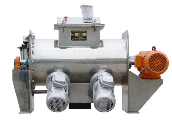 卧式犁刀混合机是一种粉体混合设备。该机即可应用于化工、涂料、医药、食品、饲料、燃料、冶金、矿山等行业的固-固(即粉体内添加液体)混合,以及湿造粒、干燥、浓缩等复合工艺。犁刀混合机较无重力混合机的效率相对低一些,特别适合喷雾量较大,纤维含量大的场合使用。对于做玻化微珠的保温企业,该机不适合,建议使用卧式螺带混合机。